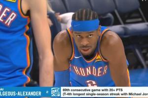 ⚡️亚历山大连续69场20+逼平91年的乔丹!并列历史第四!